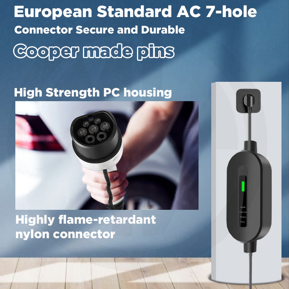Universal Type 2 Plug (IEC 62196-2) – Fits most European standard EVs and plug-in hybrids